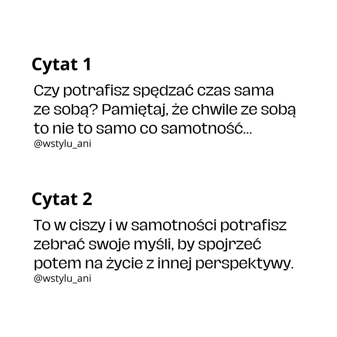 Nasza kolekcja świec sojowych została zainspirowana pięknymi cytatami z profilu na Instagramie @wstylu_ani. Każda etykieta może być spersonalizowana, co pozwala na wybór ulubionego cytatu, który nada Twojej świecy wyjątkowy, osobisty charakter.