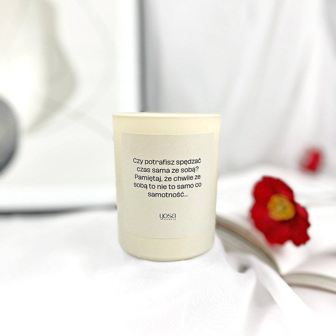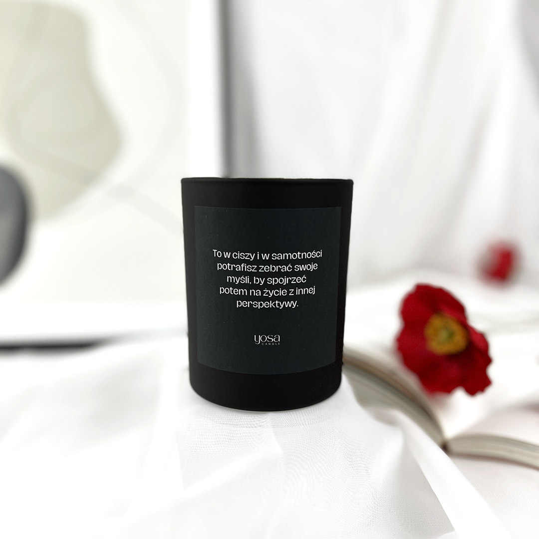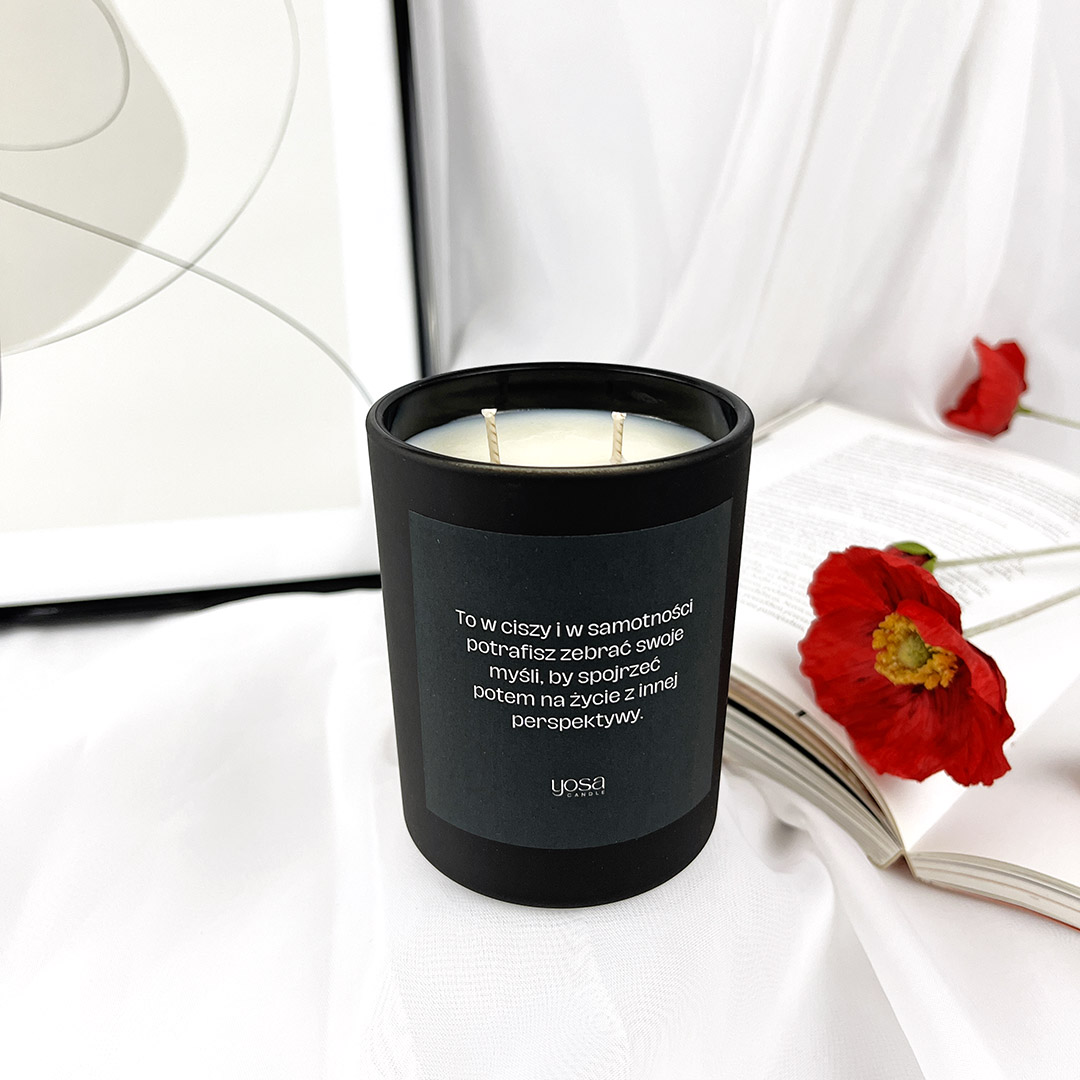 ŚWIECA Z PRZESŁANIEM – poznaj wyjątkowe zapachy i design naszej świecy sojowej, która niesie ze sobą przesłanie. Każda świeca, zamknięta w eleganckim, matowym szkle dostępnym w dwóch ponadczasowych kolorach: głębokiej czerni i kremowym, staje się nie tylko źródłem światła, ale również inspiracji. Dwa knoty zapewniają równomierne spalanie, co pozwala cieszyć się jej aromatem jeszcze dłużej. Pozwól, aby płomień naszej świecy wprowadził do Twojego domu odrobinę spokoju oraz inspiracji, czyniąc każdą chwilę wyjątkową.