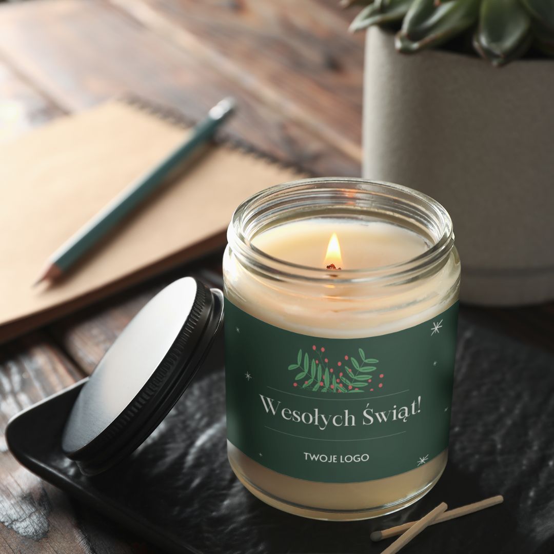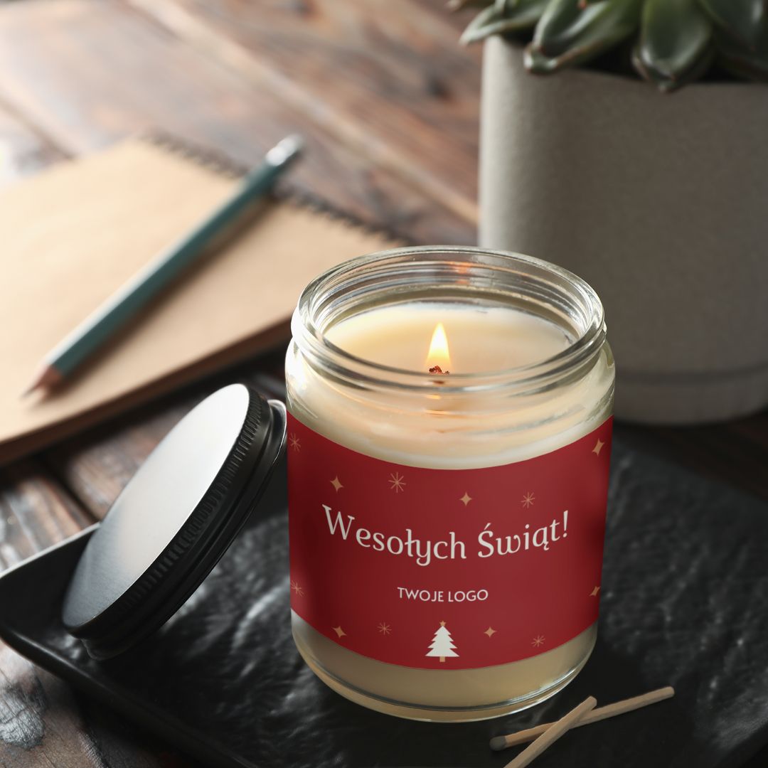 Personalizowana świeca świąteczna 180 ml z logo– wyjątkowy upominek Bożonarodzeniowy